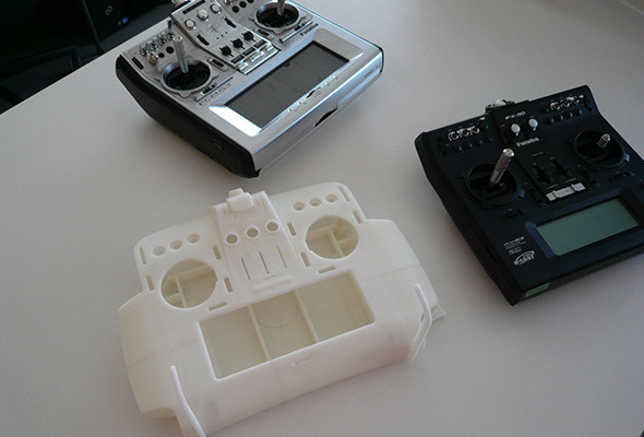 Produktdesign, Gehäuseentwicklung, Artikelkonstruktion und Rapid-Prototyping für eine Fernbedienung für Modellflugzeuge.